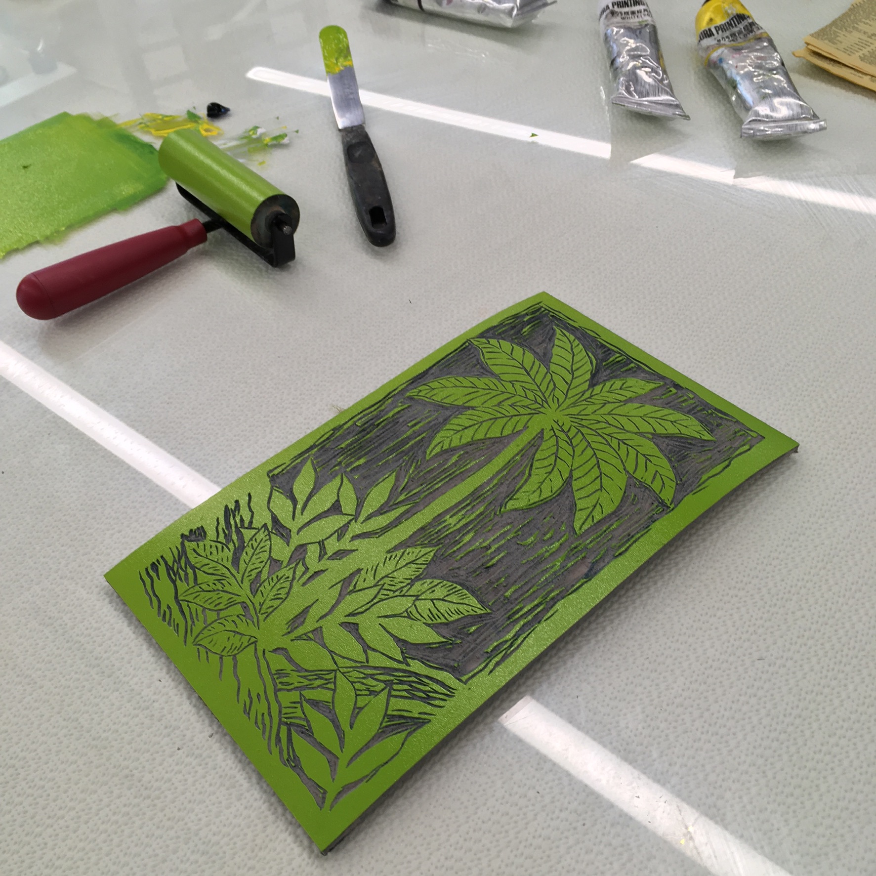 Learn safer printmaking in our well equipped studio exploring techniques like Solarplates, aluminium etching, collagraphs and Linocuts.